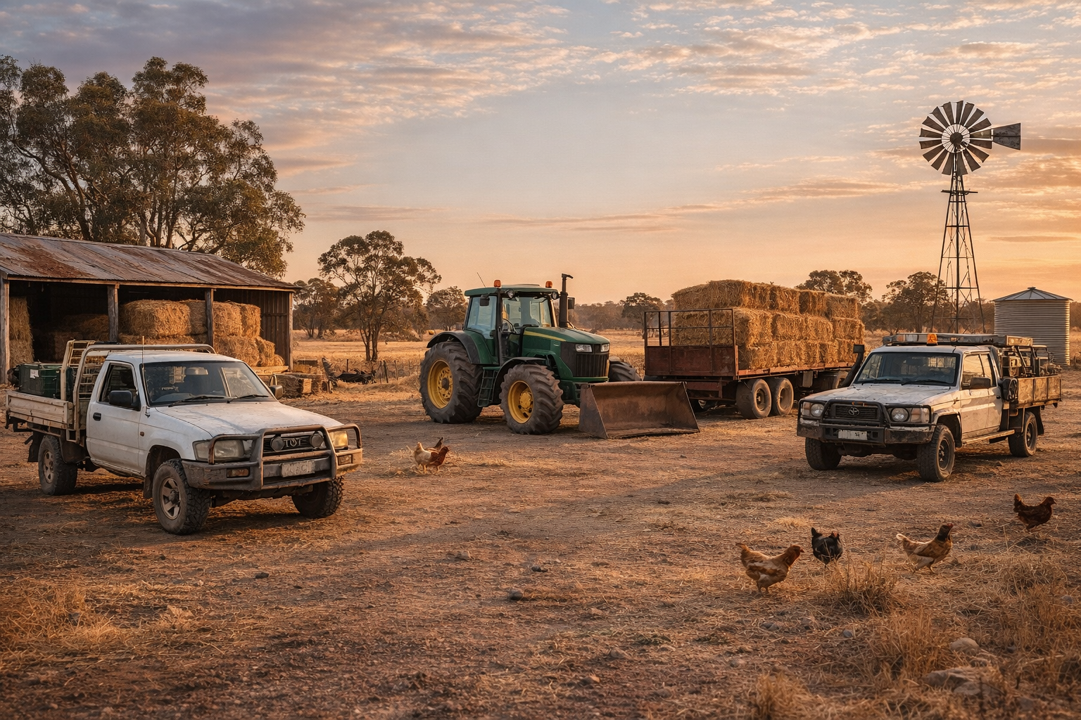 Vital for paddock access, livestock management, and property transport. Popular options: Toyota Land Cruiser, Nissan Patrol, Mitsubishi Pajero.